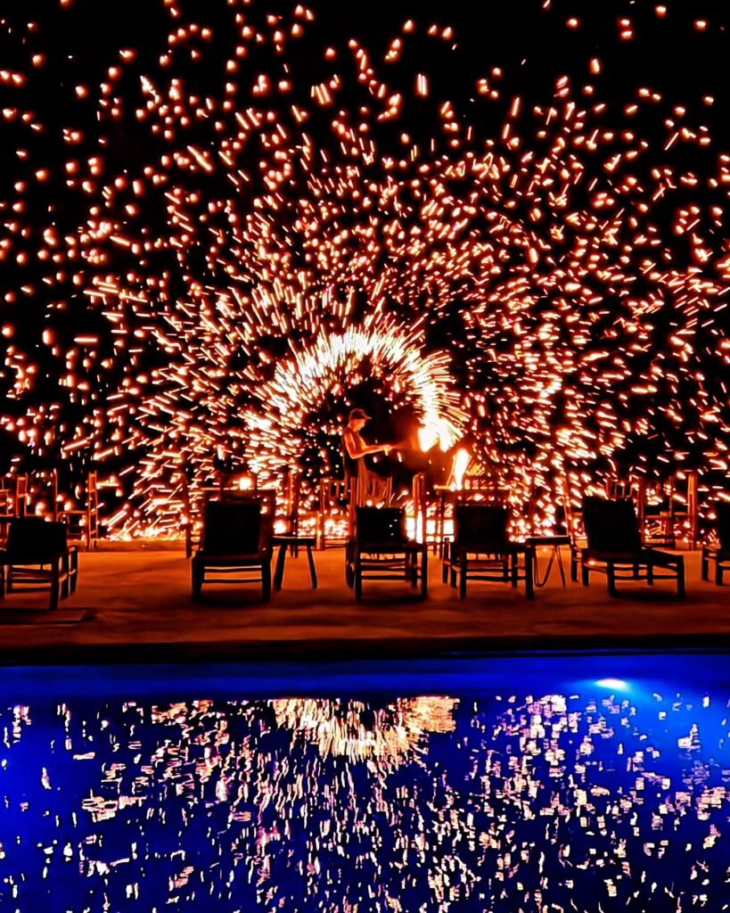 À minuit, les verres s’élèvent, les vœux s’échangent et l’année nouvelle s’ouvre sur une ambiance féérique, entre feu de camp, danse et musique.